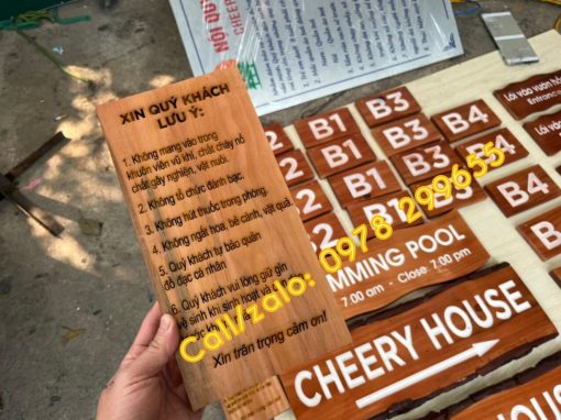 Biển số phòng gỗ Villa, homestay, resort….