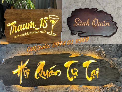 • Biển gỗ nhà hàng có đèn phát sáng đẹp
